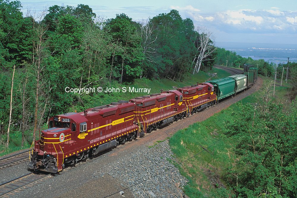 Duluth, Missabe & Iron Range Railway SD9Ms 305, 311 & 309 climbing Proctor Hill along Lake Superior 102548